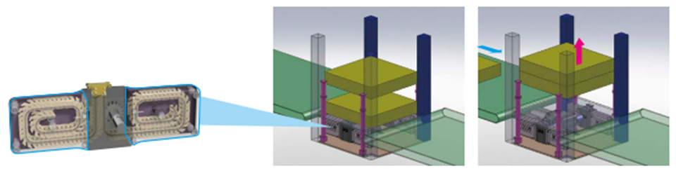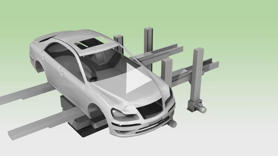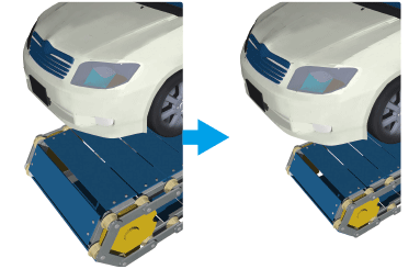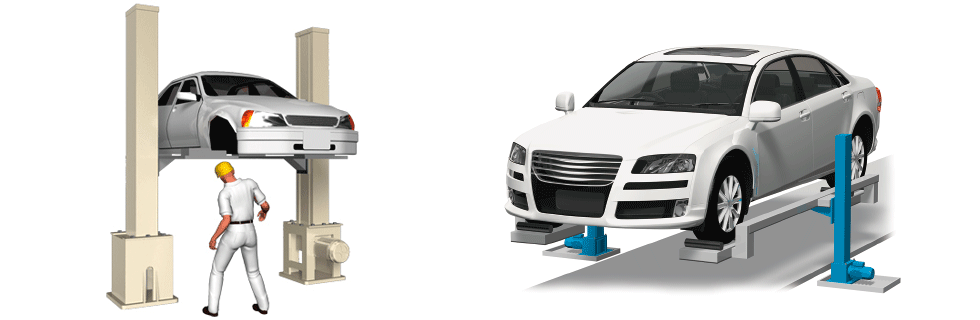 使用兩台電動升降機(Lift Master)升降機分別從左右兩側舉升車身,可確保操作便利性。此外,還能盡量減少更換量產車身時所需的設備更換次數。