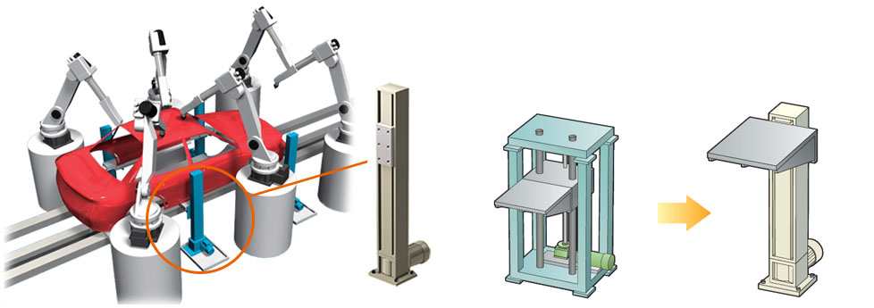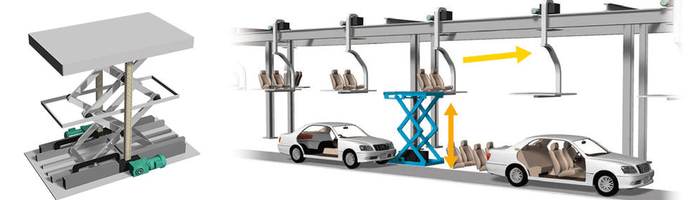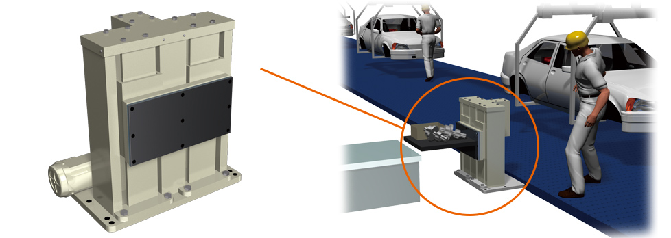 電動升降機(Lift Master)升降機用於工件進出生產線的起重設備,例如車身框架和車門等部件的焊接和組裝生產線。只需將其放置在生產線上即可立即使用,其低矮緊湊的設計節省空間。