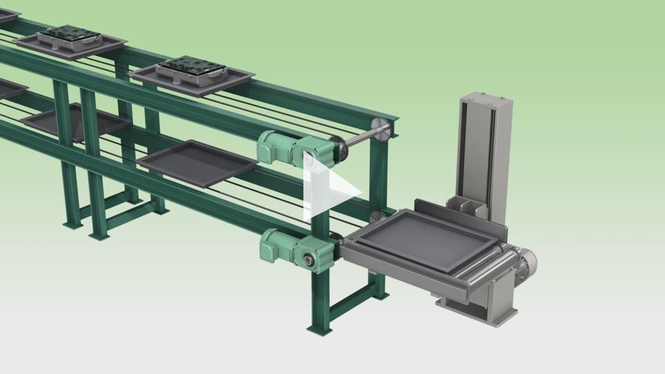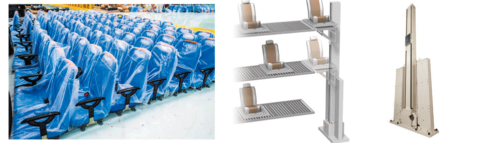 座椅等內飾部件被裝載到托盤上,並運送到組裝廠。 Zip Zip Master是一款能夠高速、高頻率、高精度升降的多級定位設備,用於將這些部件分發到輸送至裝配線的滾筒輸送機上。由於它是一種落料彈出式設備,因此可以在較短的施工週期內完成安裝,從而實現快速的現場改進。