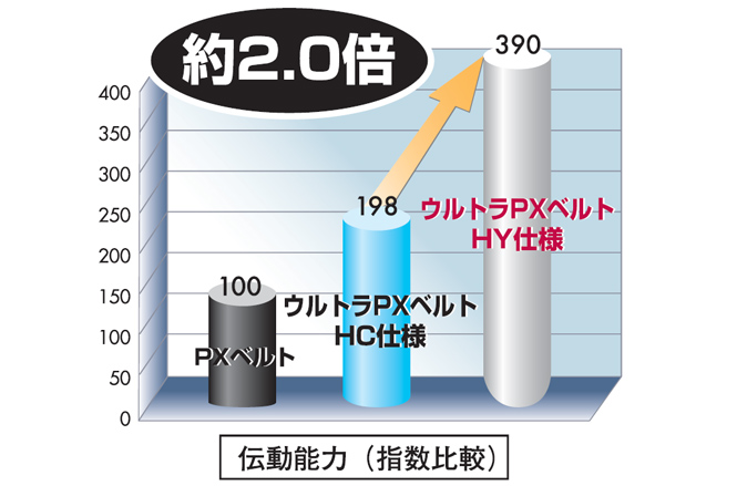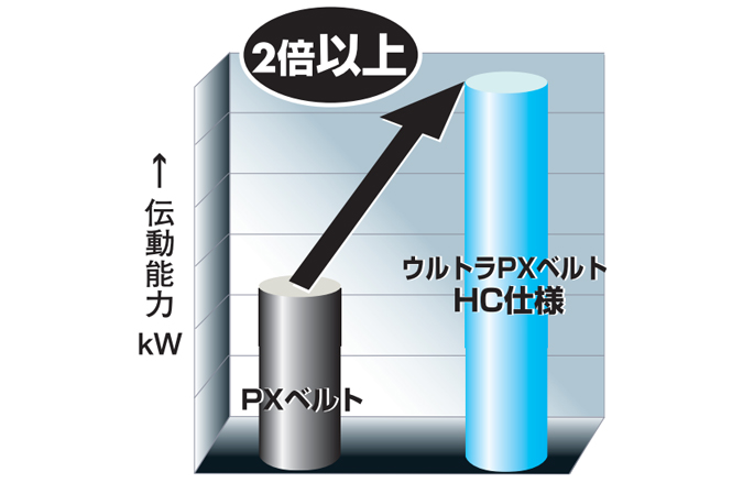 - 傳輸能力是傳統PX系列皮帶的兩倍以上