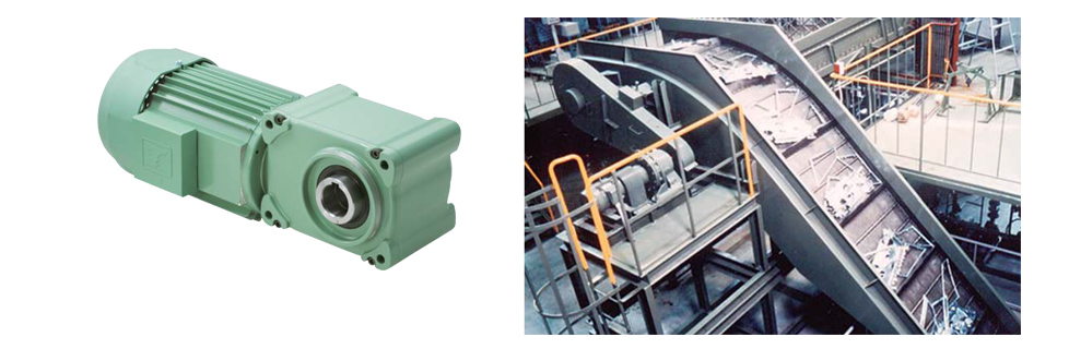 椿本準雙戟齒輪減速機可用作小型齒輪電機,驅動廢料輸送機輸送廢料。輸出軸可選實心軸或空心軸,並提供多種減速比選擇。