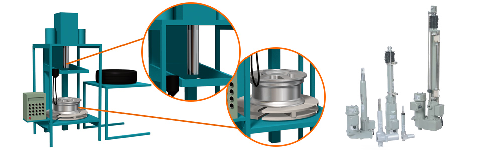 椿本的電動電動缸用於固定輪胎側面,即輪胎和輪轂組裝的地方。