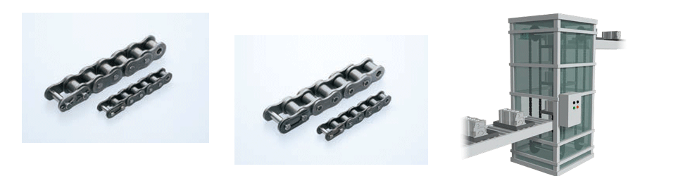 咬合式鏈條傳動裝置安裝方式節省空間,常用於龍門吊等懸吊零件的設備。它們還能夠高速升降,從而縮短循環時間。