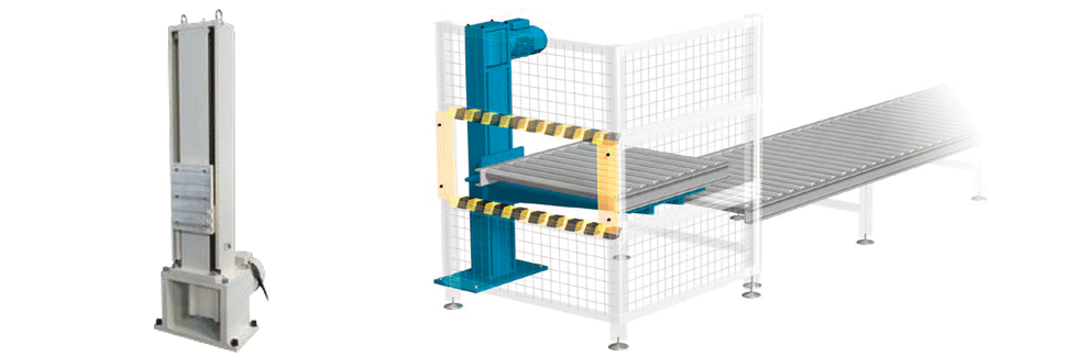 在零件處理和組裝線上,電動升降機(Lift Master)是一款單側升降、結構緊湊的升降設備,用於裝卸貨口的起重作業。它可以在狹小的空間內安裝,並且透過在頂部安裝減速機,提高了維護便利性。
