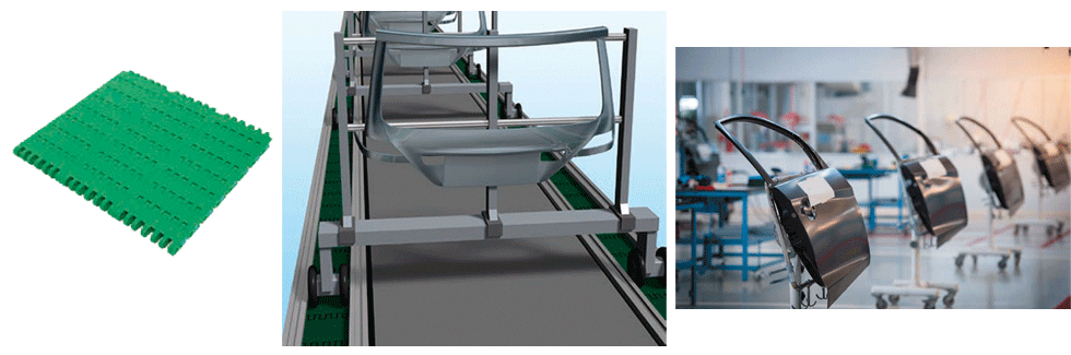 在最終檢驗過程中,用於運送檢驗員和車輛的傳送帶上會使用塑膠模組鏈條塑膠模組鏈條易於維護,因為其零件可以維修。