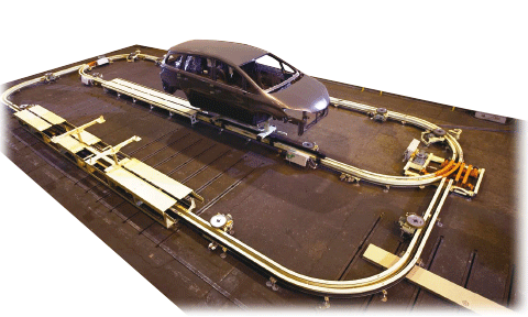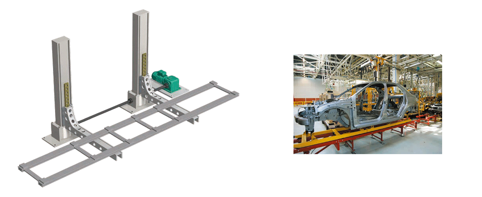 電動升降機(Lift Master)具有很強的抗側向負載能力和較長的使用壽命,也用於將組裝好的車身裝載到推車上以進行下一工序的轉運設備中。