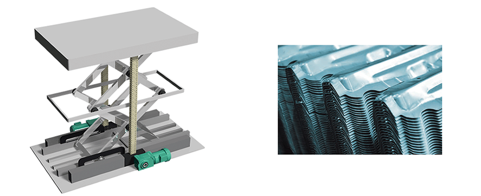 兩台電動升降機(Lift Master)電動升降機結構簡單,可以透過機械聯鎖或在每個單元上安裝馬達進行同步,從而創造一個整潔乾淨的工作環境。