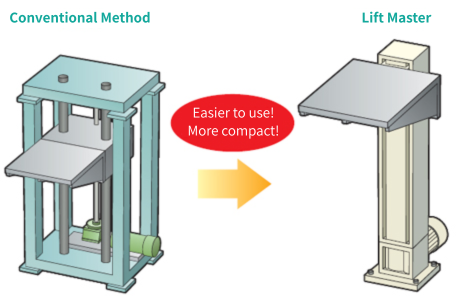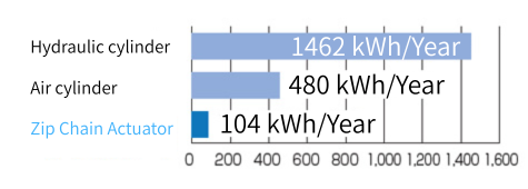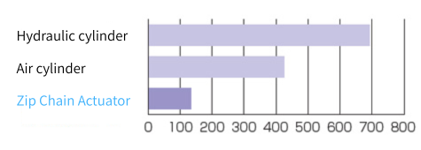 由於可緊湊地收納脫離嚙合的鏈條,因此與原來的空壓·油壓缸相比,節省了大量空間。