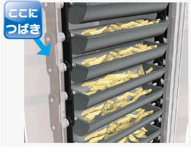通過直接搬運佈料的工序,確保了衞生。另外,無馬達鰭片構造使清掃作業變得輕松。