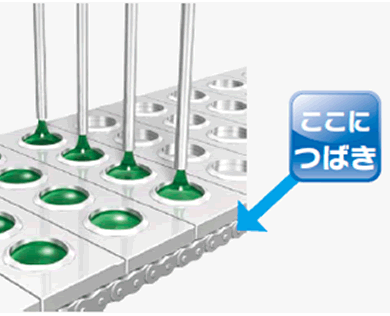 透過在軸承部分採用特殊工程塑膠*加工的襯套,實現了免加油。這延長了使用壽命並減少了鏈條的初始伸長,使其廣泛應用於填充和包裝機械。