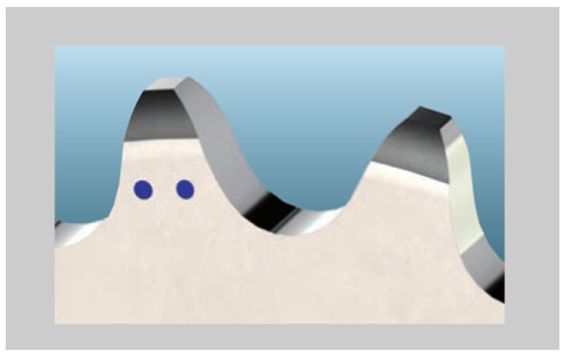 チェーンの状態は管理しているがスプロケットの状態を把握できていない場合があります。摩耗限界マーク付スプロケットは一目で摩耗状態が分かるように歯面に摩耗限界を表示する仕様(穴加工+特殊インクの着色)です。交換時期の目安やメンテナンス工数の削減に、またチェーンの長寿命化も図れます。