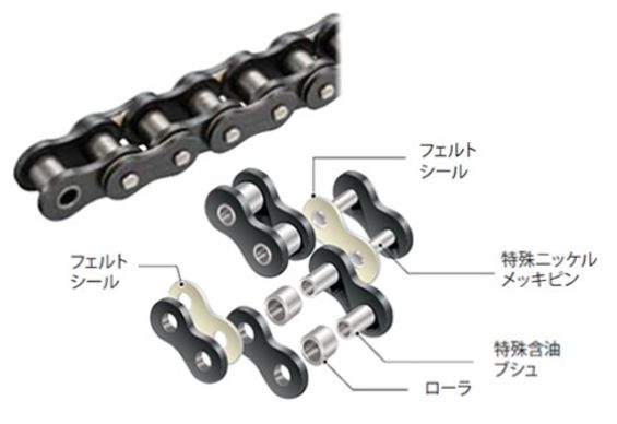 ラムダチェーンは無給油でも、特殊含油ブッシュの効果により、長寿命でご使用いただけます。