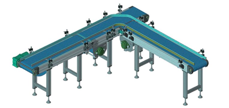 包装された製品や、段ボールの搬送にベルトコンベヤより容易なプラスチックモジュラーチェーンが採用されています。また、その他の関連装置としてつばき独自のリニアアクチュエータのジップチェーンアクチュエータや軽量搬送コンベヤに特化した新製品の減速機があります。