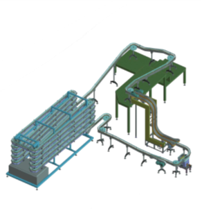 一種樹脂鏈條輸送機係統,可將衞生不銹鋼框架標準化,並可輕松構建佈局。模塊化結構,支持多種佈局,易於組裝。