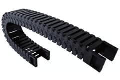 透過將電纜、管道和支撐部件安置在專用的氟樹脂艙中,可以防止磨損粉的散落,從而在椿本電纜保護鏈條系列中實現最低的粉塵產生量,並達到ISO 1 級標準。這提高了生產設備的品質可靠性。