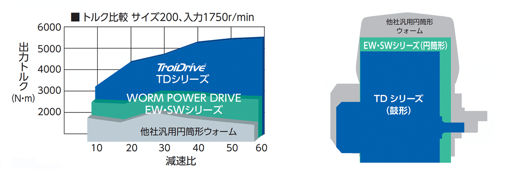 由於同時嚙合的齒數眾多,TD 減速機是所有齒輪減速機中角度傳動誤差最小的。