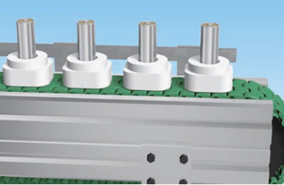 由於其重心低,且設備設計緊湊,因此適用於穩定輸送。與倍速鏈條類似,鏈體和側邊滾子的材質皆可選擇。