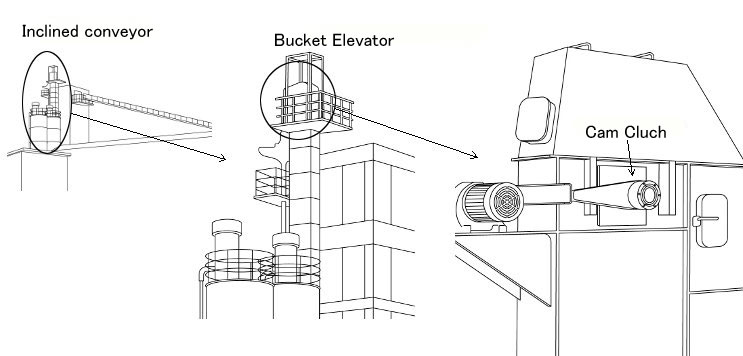 應用事例集凸輪離合器-17.鬥式提升機、傾斜輸送機