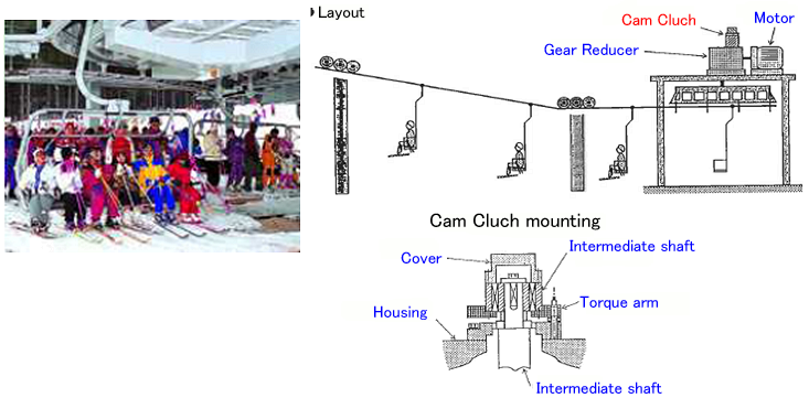 應用事例集凸輪離合器-19.防止滑雪升降機逆轉