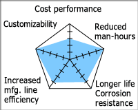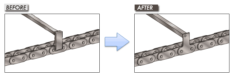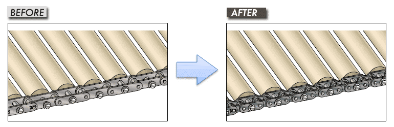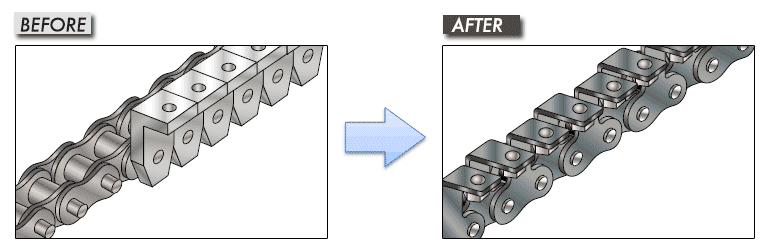 以前使用的是三節距鏈輪,這需要製造特殊的鏈輪,但透過改為交替鏈條節距,就可以使用標準鏈輪了。