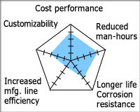 製造用於附件標準鏈條的門形樹脂塊需要耗費成本和工時。透過簡化樹脂塊的形狀並採用特殊附件,我們成功地降低了成本和工時。