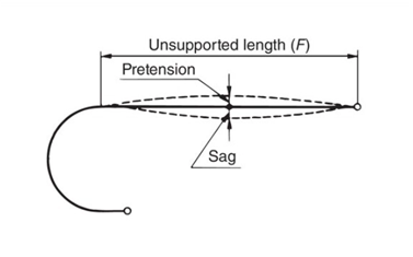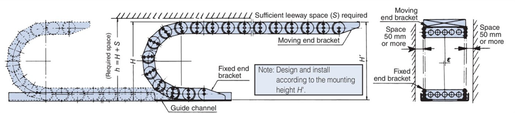 另外,由於自由跨度在使用過程中會下垂,請在電纜保護鏈條內週周圍留出一些空間。
