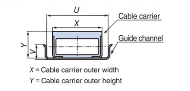 X =電纜保護鏈條的外寬度,Y =電纜保護鏈條的外高度