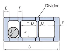 B':最小所需框架寬度;U:隔板厚度;Y:連接板厚度