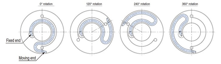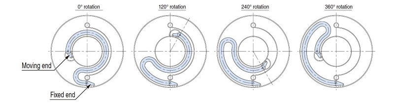 - 它可用於將電纜和軟管連接到機器人等設備的旋轉部件上。旋轉規格塑膠電纜保護鏈條的結構與標準產品略有不同,但外部尺寸與標準產品相同。