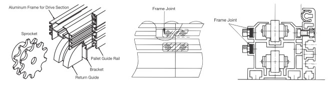 - - 引導倍速鏈條的返回側到達鋁合金車架的兩端。