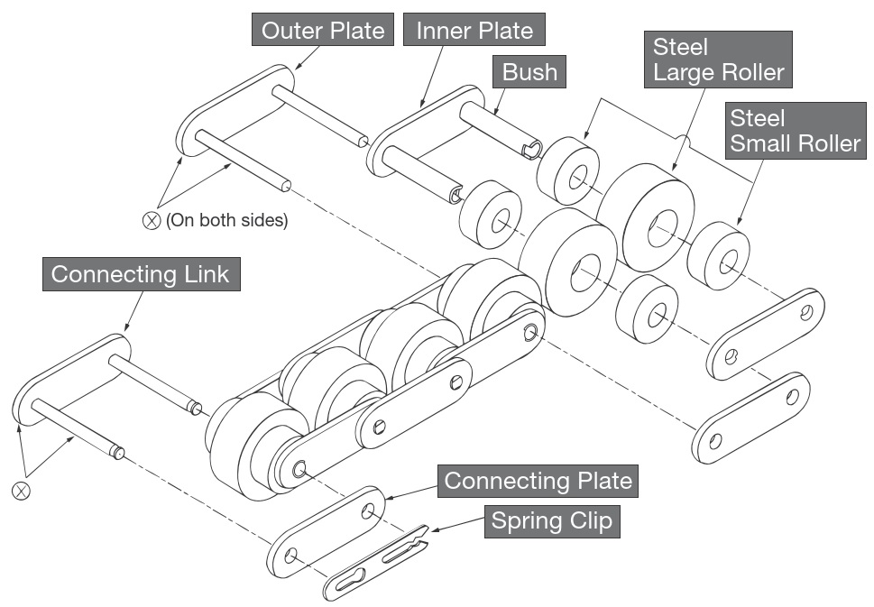 對於中心滾子鏈,請使用專為倍速鏈條設計的鏈輪。