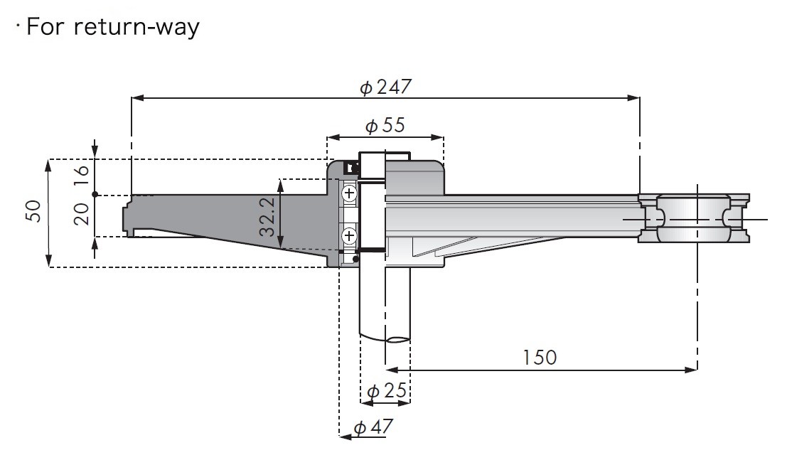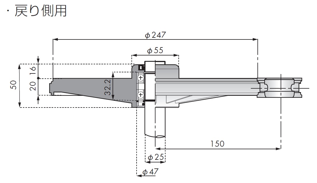 注記 1.搬送側用と帰り側用はシャフト貫通の可否のみが異なります。 2.ベアリング・シールリング等はディスク本体とバラでの出荷となります。