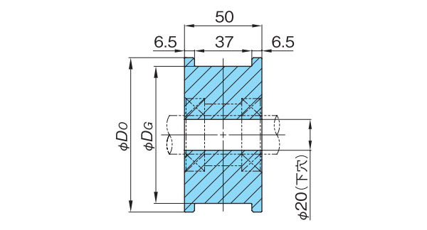 | 型號 | 相應齒數 | 外徑 Do mm | 軸孔 形狀 | 底孔 mm | 溝部直徑 DG mm | 概略質量 kg |