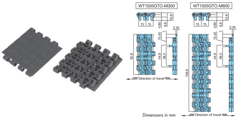 塑膠模組鏈條WT1505GTO-M 型主要規格