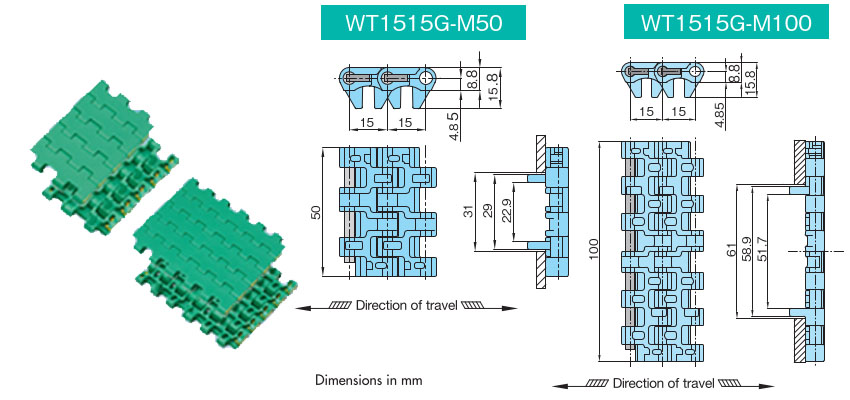 塑膠模組鏈條WT151 5G-M 型主要規格