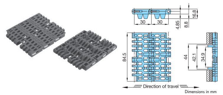 プラスチックモジュラーチェーンWT3086G-M形 主要諸元