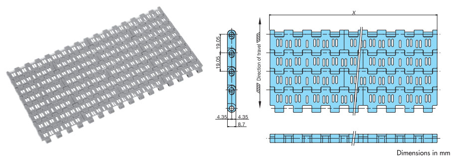 プラスチックモジュラーチェーンBTO6RN形 主要諸元