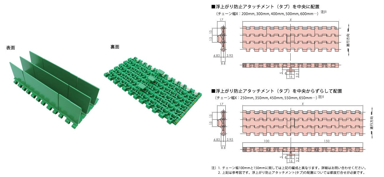 • 註:1.最大容許張力和摩擦係數與標準規格相同。
