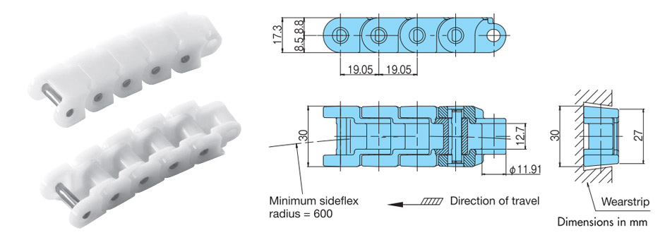 RSP-CU型塑膠塊狀鏈條主要規格