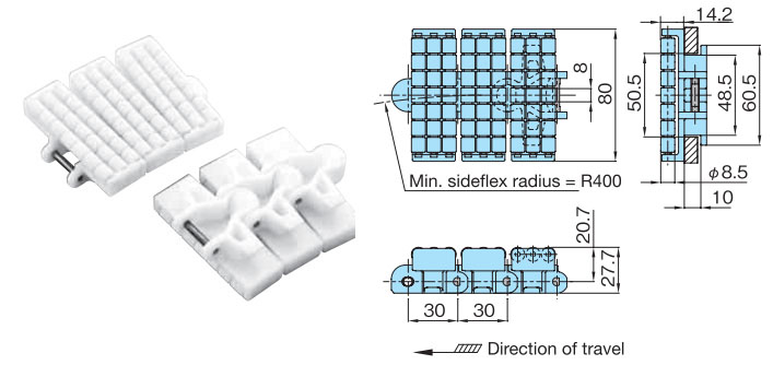 プラトップ®チェーン カーブドアキュムレーションチェーンTP-30UTW-LAP形 主要諸元