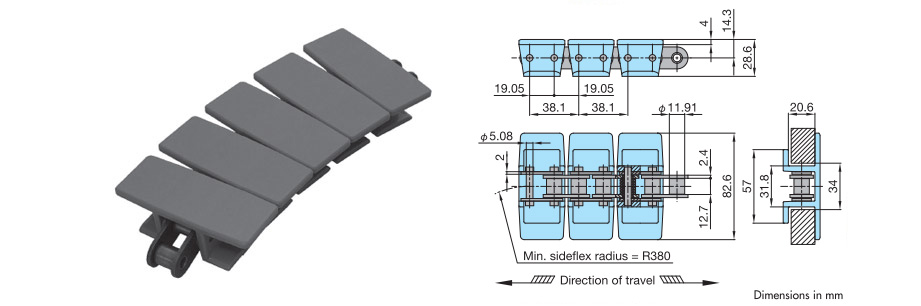 • ·這是一款在曲線用滾子鏈子上安裝了頂板的款式,可以只更換頂板。