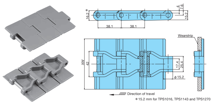 • ・曲線搬送用プラトップチェーン(TTUP,TPU形)と同じスプロケットが使用可能。部品の共有化が可能です。