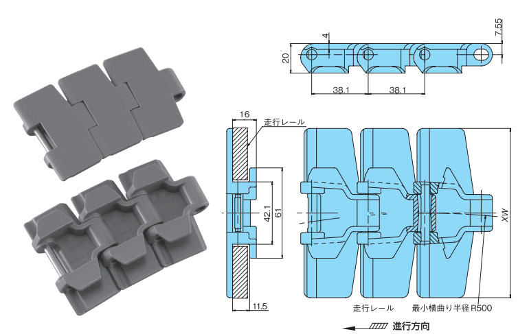 • ・プレート幅もTPU形より大きい114.3mm。大きめの搬送物にも活用いただけます。