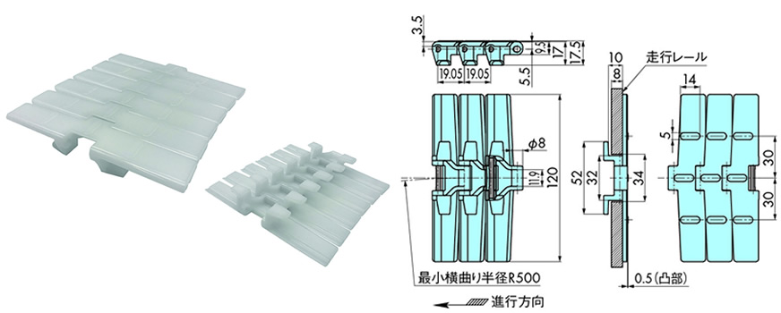 • ・搬送面の3つ凸形状により搬送物の滑り落ちを抑制。
