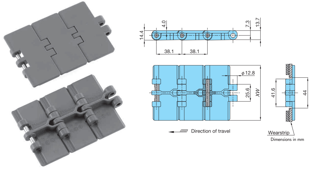 TTP型塑膠頂板鏈條 主要規格