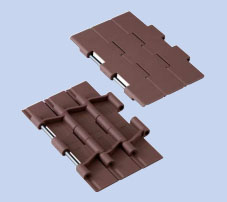 此傳送鏈由鏈條和塑膠板模製成一體,塑膠板可防止搬運物被刮傷,並透過連接銷將它們連接起來。