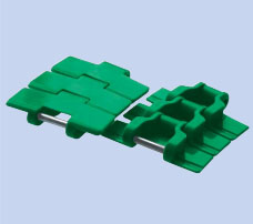 此傳送鏈由鏈條和塑膠板模製成一體,塑膠板可防止搬運物被刮傷,並透過連接銷將它們連接起來。
