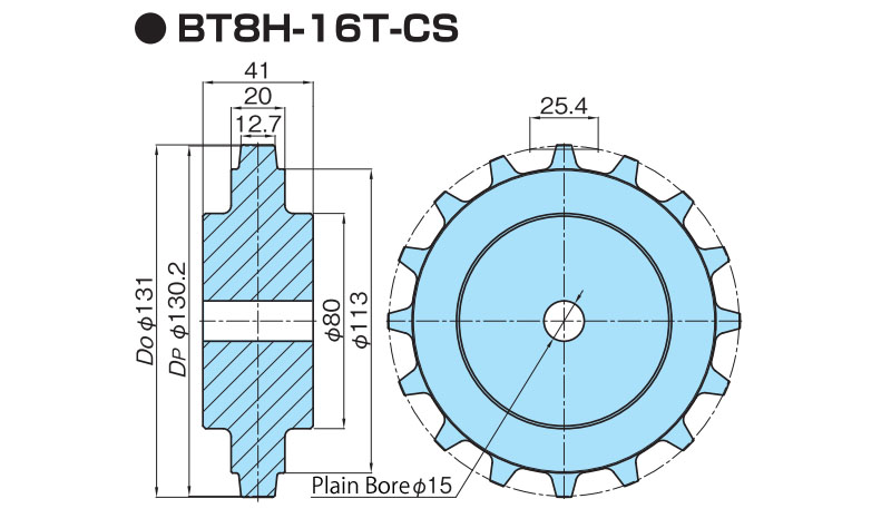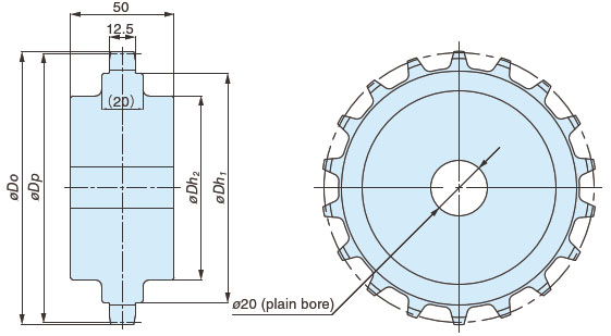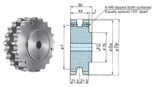 上表以上的齒數可使用RS鏈輪B型。 RT600型可使用RS鏈輪B型的12T以上款式。 不鏽鋼規格時也相同。