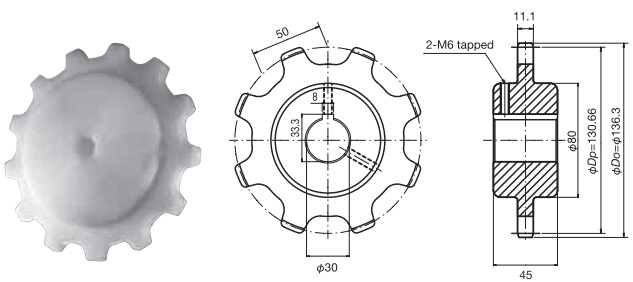 鋼製鏈輪(底孔型)支持軸孔加工服務