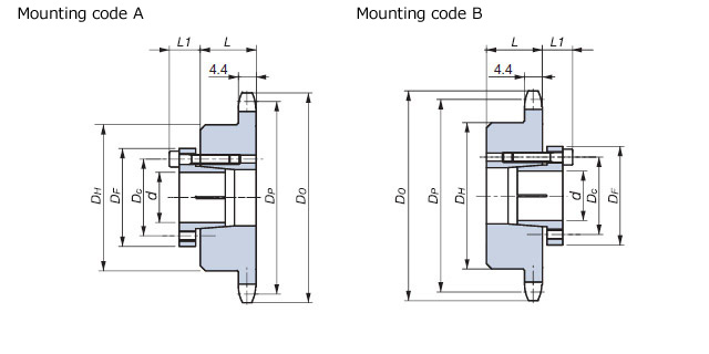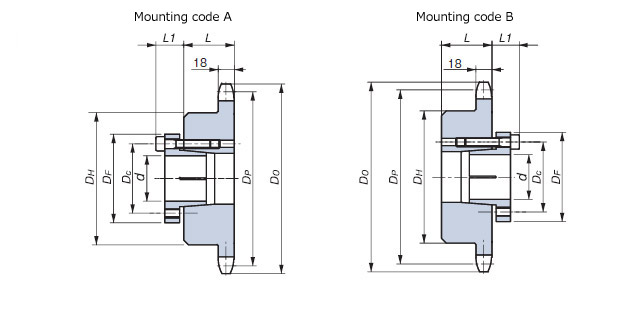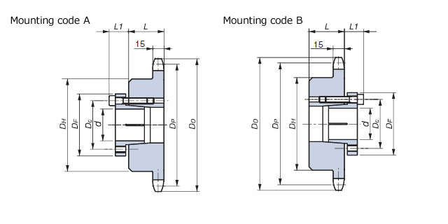 不能使用雙排鏈輪。請使用兩個1列B型鏈輪,並確保齒相對齊。
